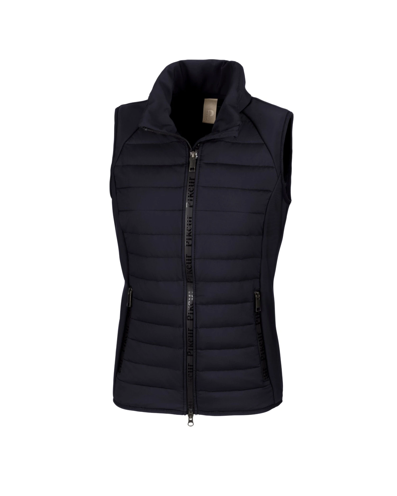 Pikeur Ellie Ladies Hybrid Waistcoat. Featuring a hybrid fabric of quilted and softshell sections, the quilted section is filled with ultra-functional COMFORTEMP synthetic down, offering a sustainable and cruelty-free choice.