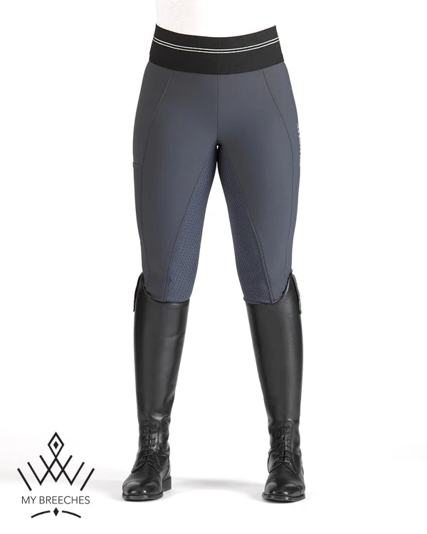 Pikeur Gia Grip Sporty Ladies Athleisure breeches with full grip seat panel and high rise waist. The Winter version of this comfortable style, made in a warm and cosy softshell fabric.