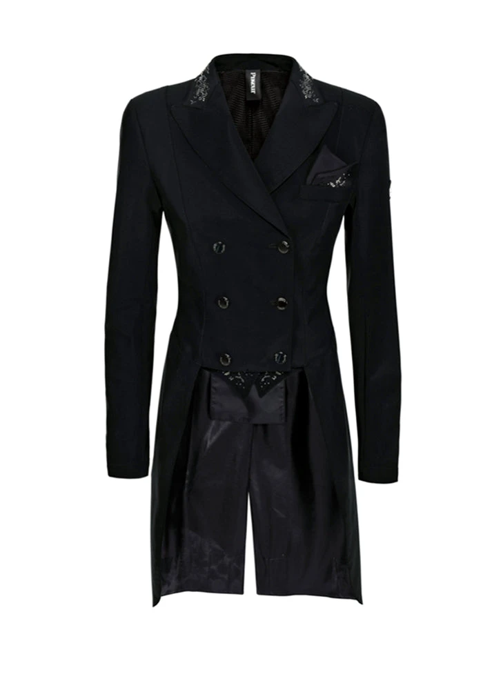 Pikeur Lilien ladies Dressage Coat/Tails/Shadbelly. Make the ultimate Centre Line Style Statement! This stunning coat features an elegant and tailored cut to ensure a perfect fit, and beautiful crystal detailing the collar and points.