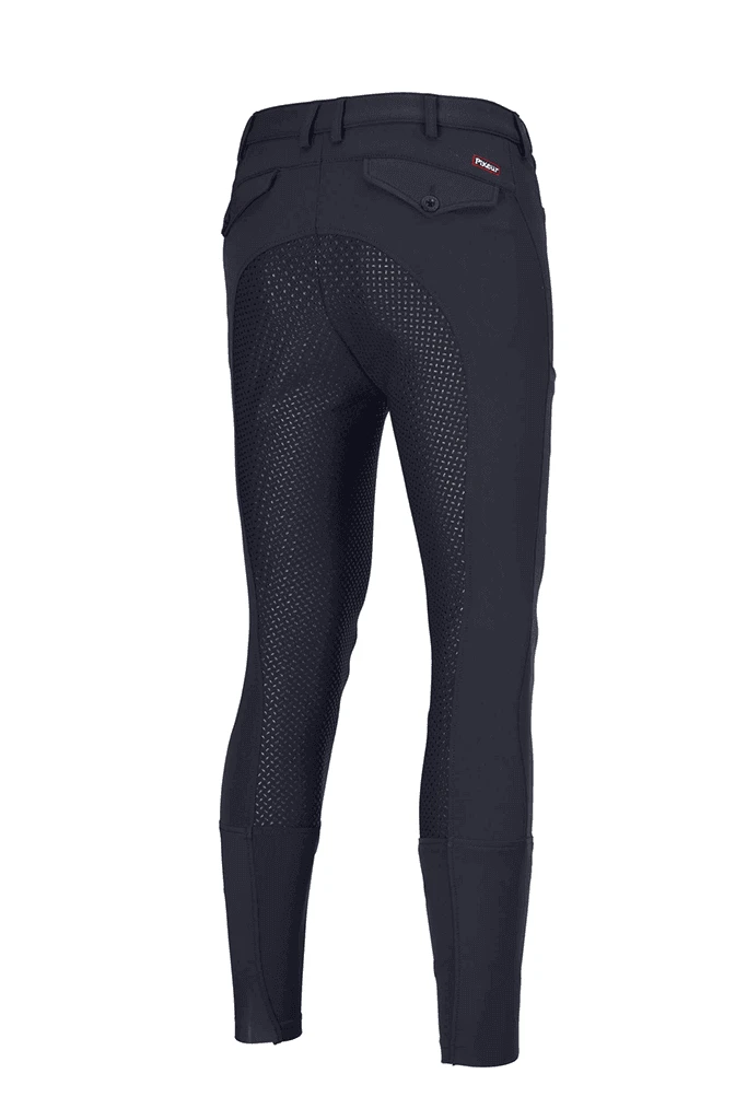 The Navaro breeches by Pikeur has many advantageous features. These men’s breeches impress with the Grip full seat, which provides a good grip in the saddle. In addition, it is made of an all-season functional fabric and gives a good wearing feeling due to lightweight materials. It offers good thermal insulation and an optimal temperature balance. During a strenuous workout, it has an odor-absorbing and antibacterial effect. The breeches are made of an environmentally friendly and certified fabric. In addition, the stretch leg cuffs with an additional elasticity give an optimal wearing comfort. The visual appearance of this men’s breeches is rounded off by its Pikeur embroidery features and the comfortable pocket equipment with an integrated cell phone pocket.