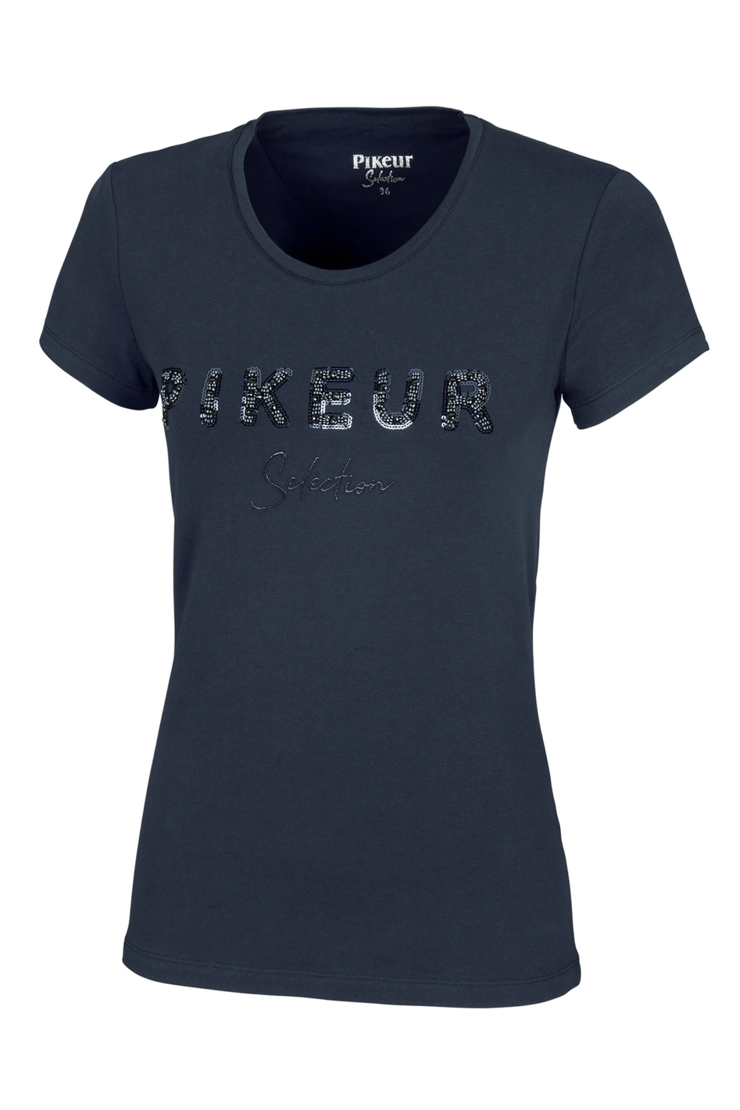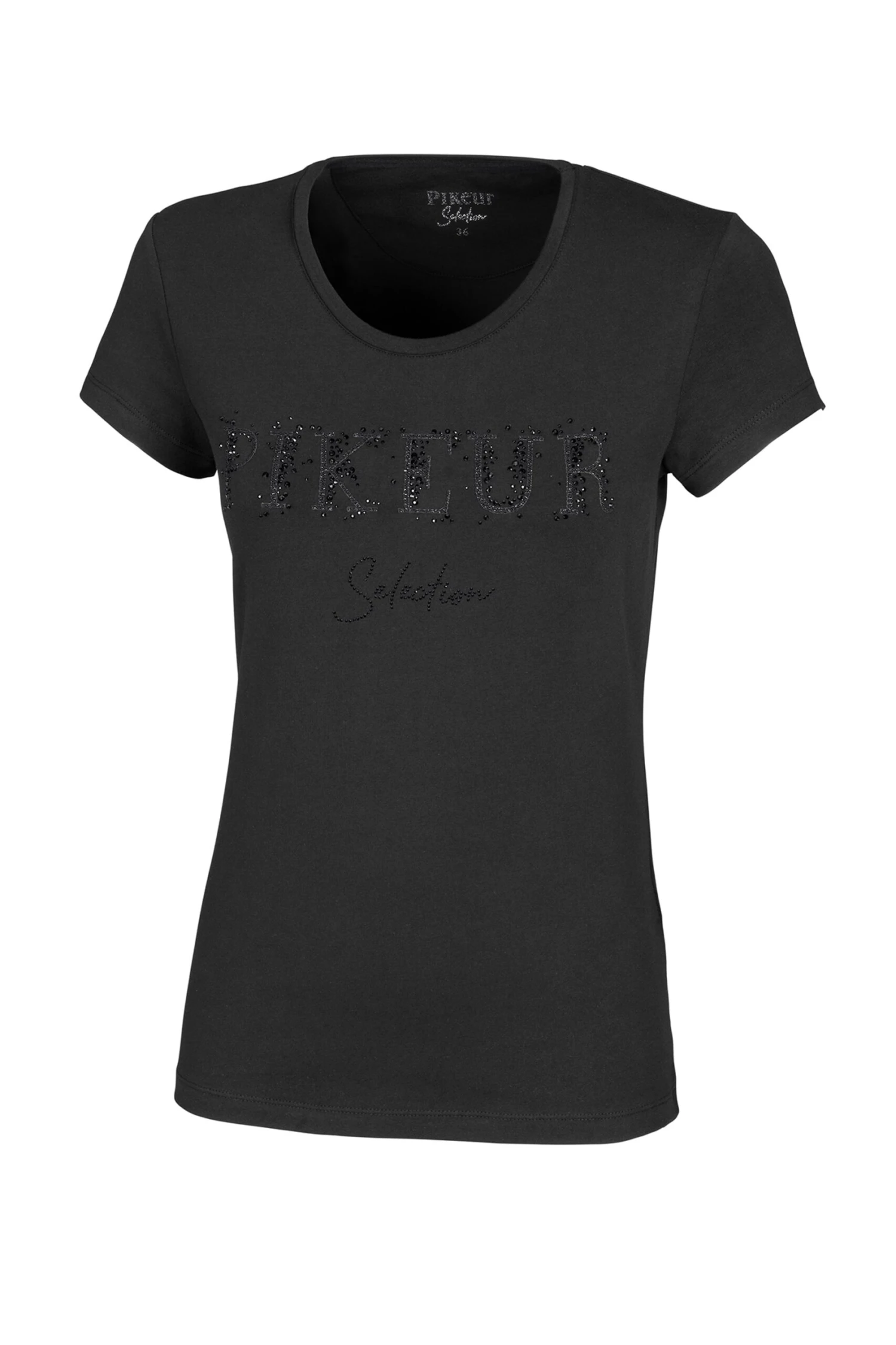 Featuring a soft and easy to wear fabric, and large PIKEUR SELECTION rhinestone detailing on the chest.