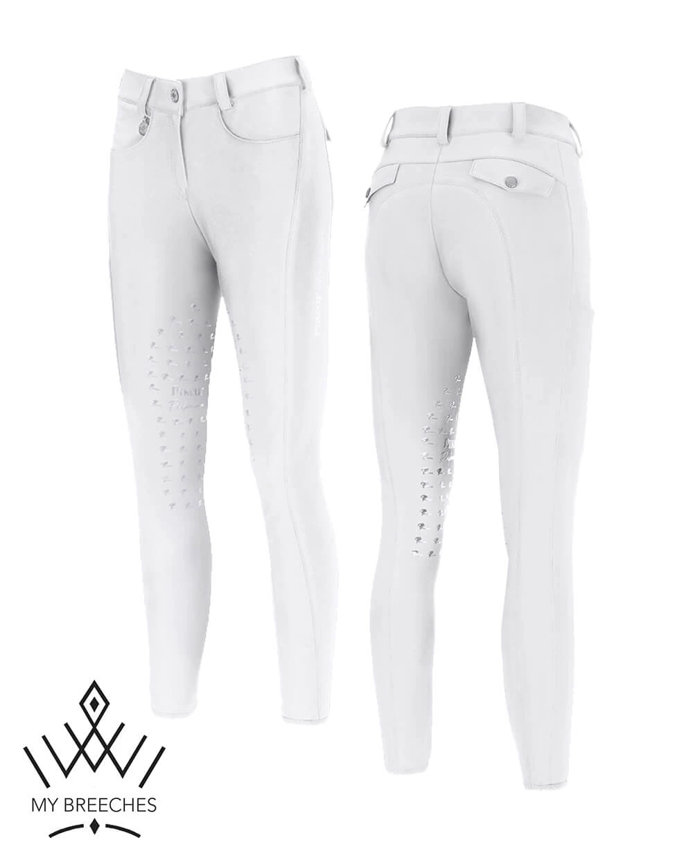 These breeches have grip knee patches, a side phone pocket and stylish Pikeur logo lettering on the leg.