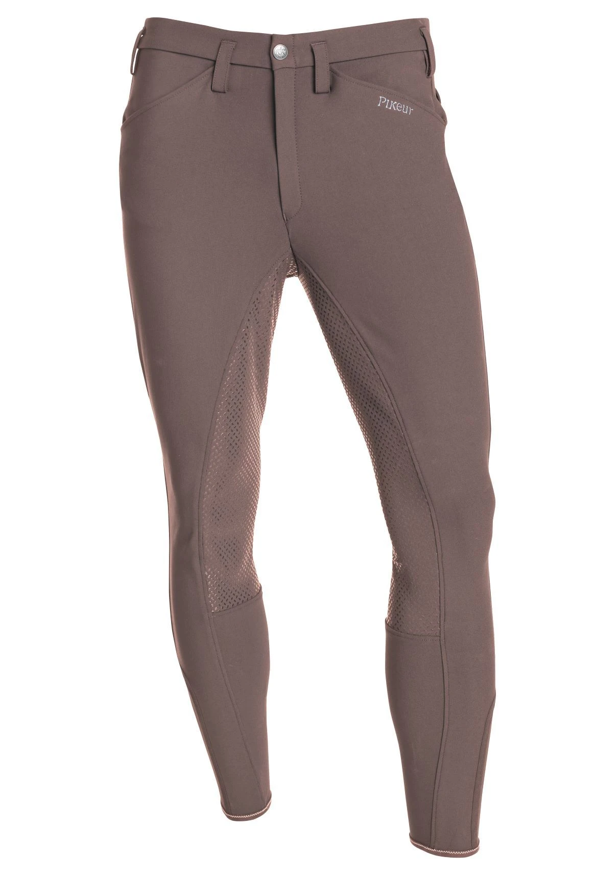 Based on the traditional Rossini, our most popular men’s full seat style, but with a new grip seat. Featuring the classic 4-pocket design, small PIKEUR emblem below left front pocket, functional belt loops, and elastic leg closure.