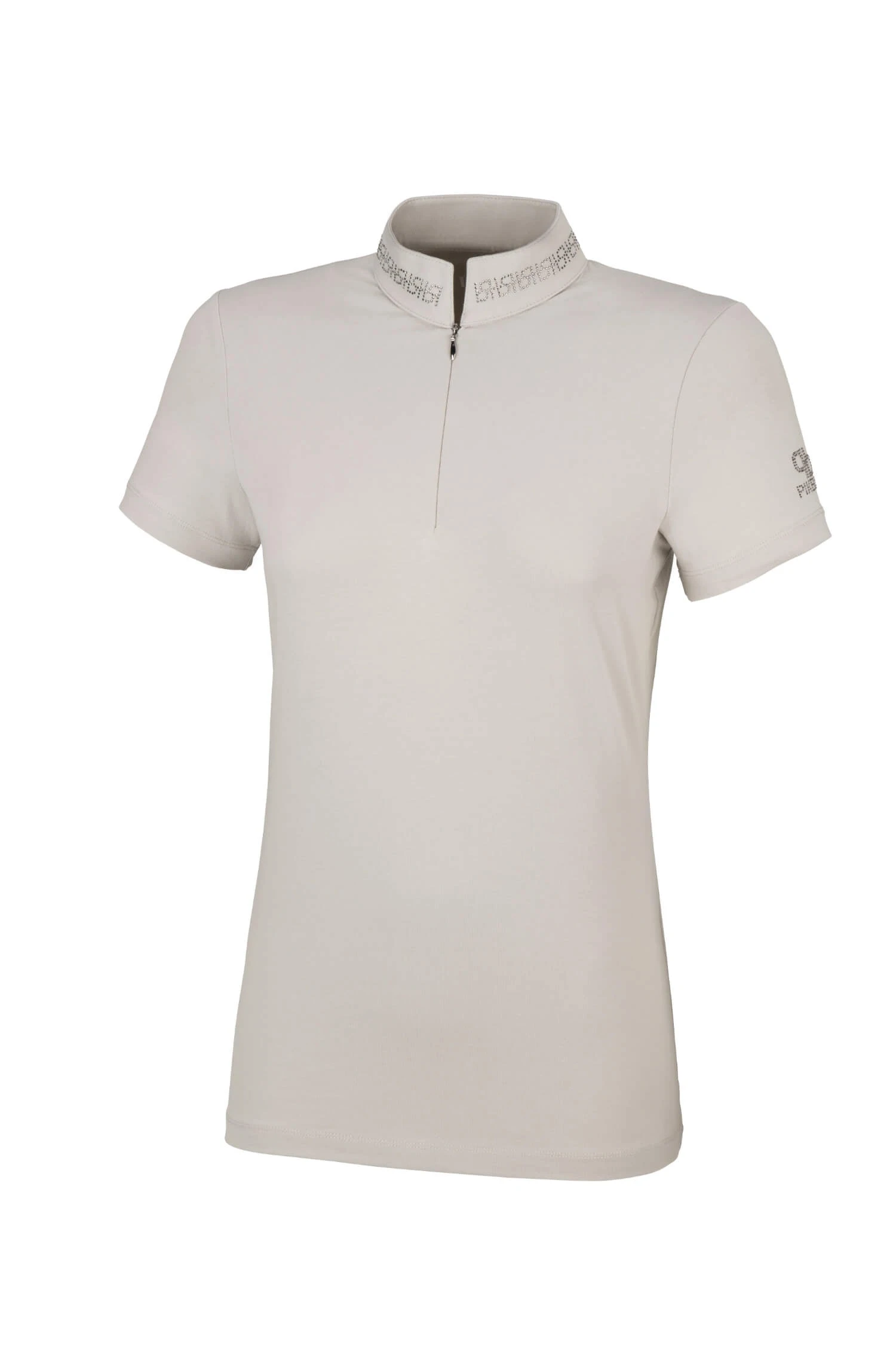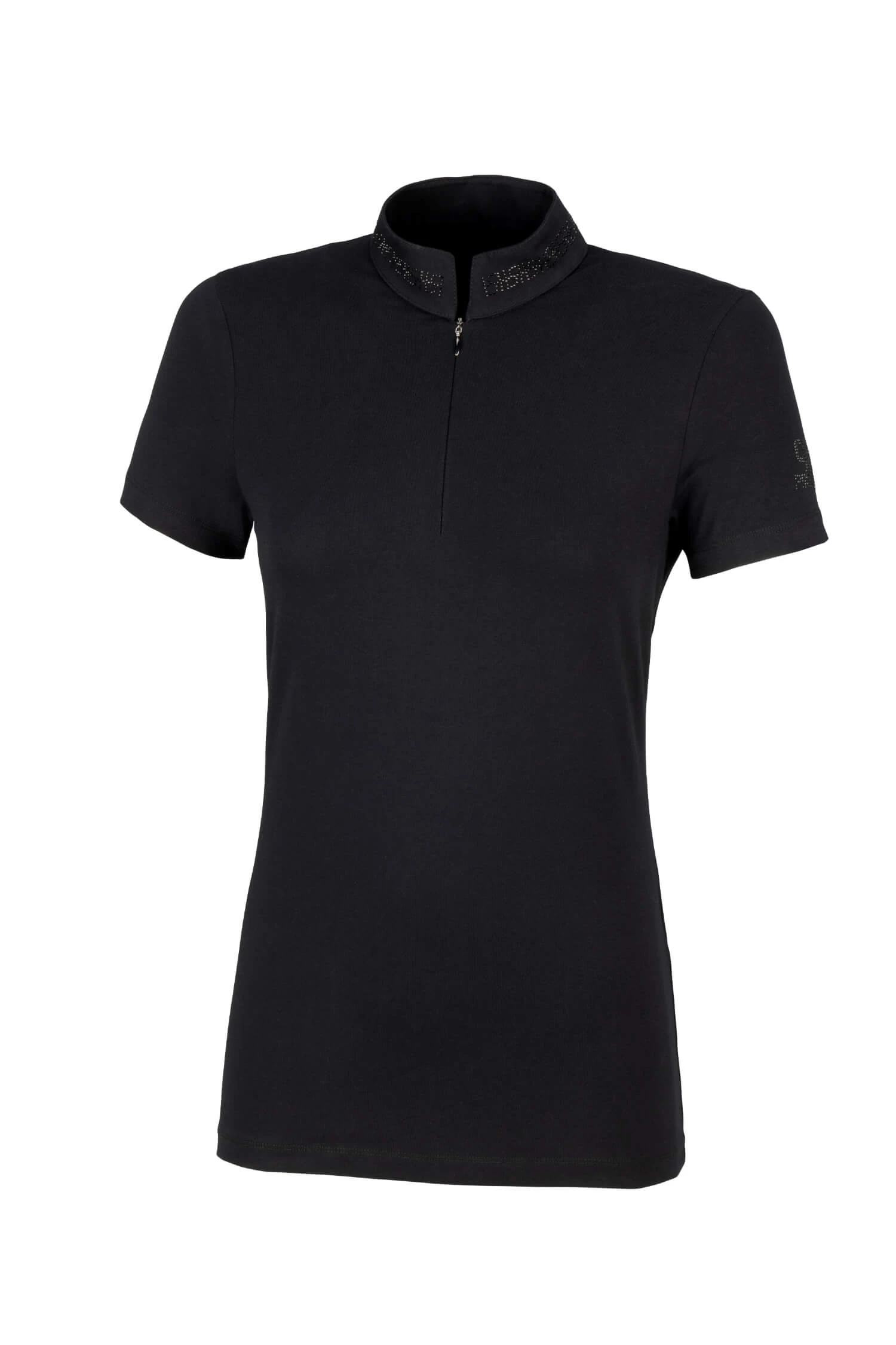 Pikeur Vroni Ladies Cotton Zip-Shirt. Keep things classic in cotton! This super smart lading riding shirt features rhinestone detailng, an easy-care and easy to wear cotton fabric, a stand-up collar and zip closure.