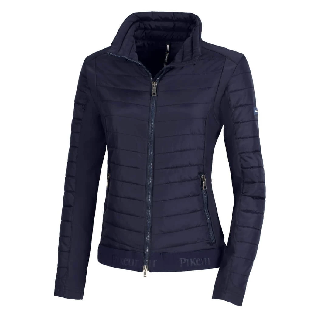 The jacket by Pikeur is the ideal everyday companion. It features a stand-up collar and is made primarily from recycled fabrics. The outer fabric made of recycled polyamide is matte and water repellent. Freudenberg’s Comfort Temp filling makes the jacket comfortable to wear throughout. On the sides is a softshell insert with a mesh look. The elastic softshell material makes it comfortable to wear. The elastic hem with an elastic band and the inscription Pikeur is the eye-catcher of this jacket and also ensures an ideal wearing comfort. The jacket is embroiderable and can thus be individually decorated with the most diverse logos or club names.