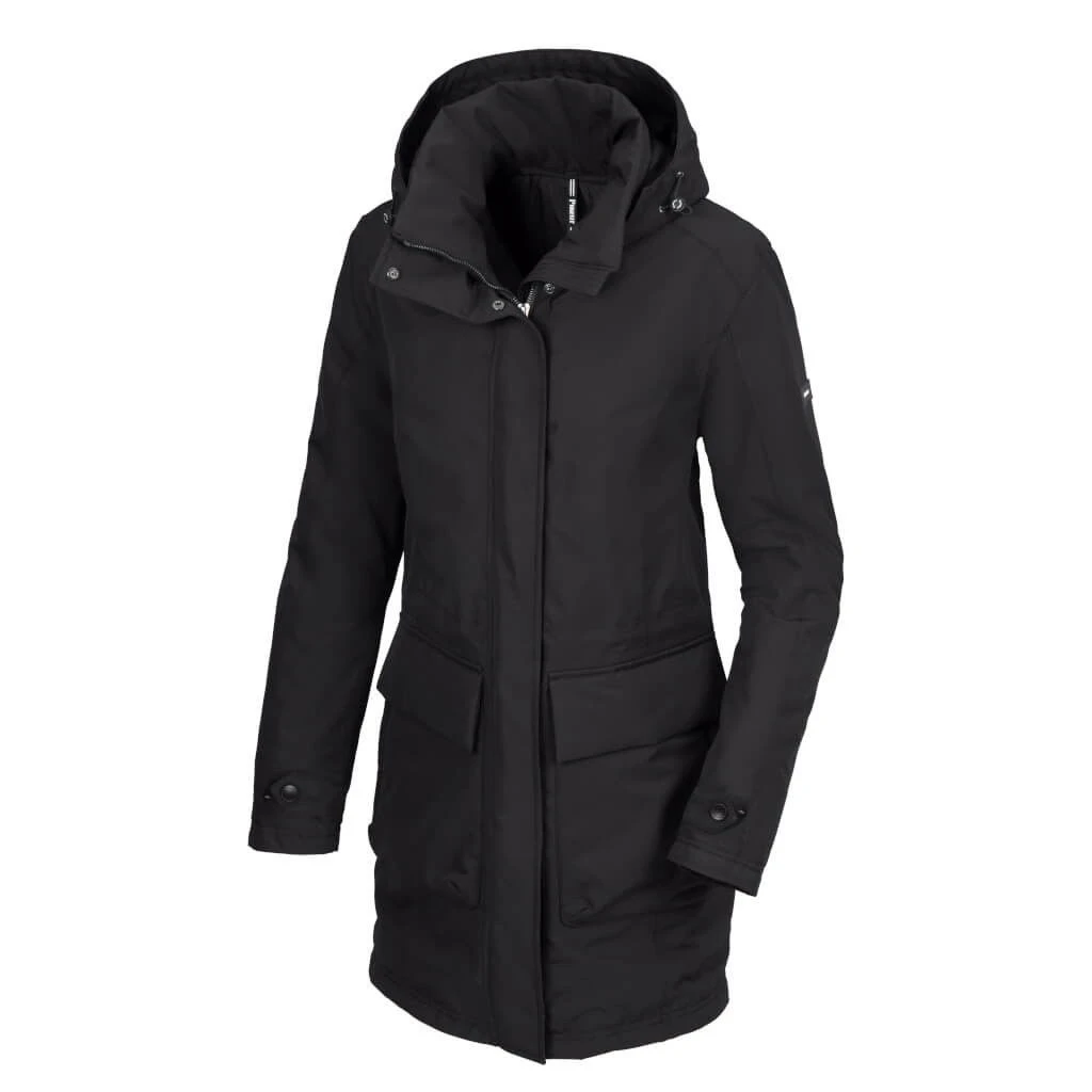 The parka Esme comes from the fall/winter collection 2022 by Pikeur. It convinces not only by its simple design, but equally by functional properties. The material in connection with the taped seams, make this parka waterproof and breathable. The lining is quilted with 145 g absorbent cotton in the torso and 125 g absorbent cotton is processed in the sleeves. It is cut in a classic parka shape with a comfortable, soft outer fabric. About a drawstring on the inside of the parka, you can regulate the width of the waist. Thus, the best possible fit is achieved. To be able to wear it while riding, it is equipped with a zipper on each side. The two-way patch pockets provide ideal storage space for necessary items. The Esme parka is the ideal choice on cold days.